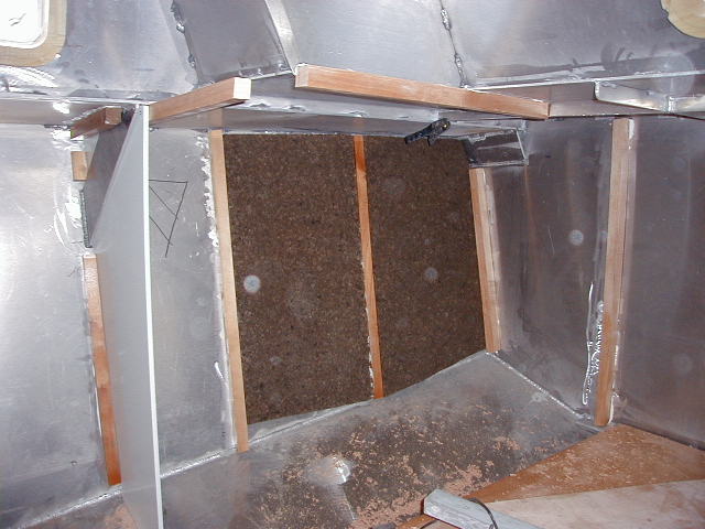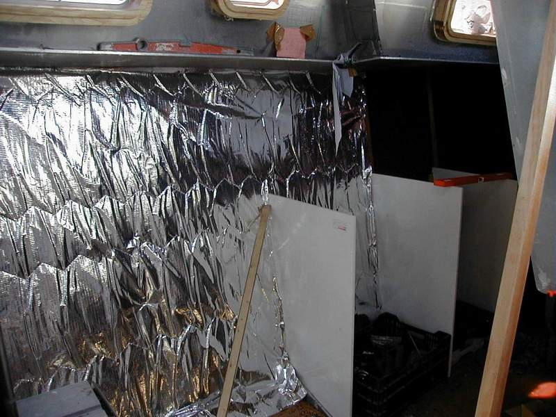 Tasseaux en bois collés, plaque de liège expansé, isolution aluminium 11 couches, vaigrage Komacel