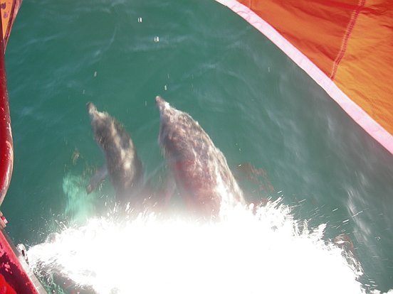 encore nous saluer et jouer autour de l’étrave.