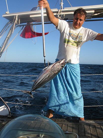ligne de traîne : Il a remonté un joli petit thon.