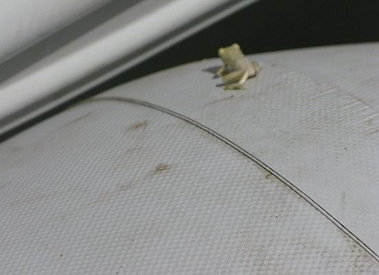 Désiré et sa femme m’ont invité à déjeuner et m’ont proposé de cuire mes restes de thon avec du riz du village. Repas très riche en conversation : Ils ont un projet de construction d’un camp villageois pour accueillir les touristes, et une réflexion intéressante sur les rapports entre les gens. La femme de Désiré a un bagout fabuleux et brûle de l’utiliser … le tout en un excellent français et avec de grands sourires. Un vrai plaisir. J’ai aussi fait la connaissance de Jules César (dont une voisine se nomme Jeanne d’Arc), de Cécile qui m’a fait une belle lessive avec une honnêteté surprenante (elle m’a baissé le prix car elle a trouvé que j’amenais moins de linge que prévu). Sur le chemin j’ai fait la connaissance d’Ernest qui essayait de démêler ses lignes. Comme nous bavardions, il m’a donné un tabouret et je me suis mis à l’aider dans son travail rejoint par le petit Daniel âgé de 3 ans. A nous 3 nous avons réussi à tout rembobiner et cette heure de travail manuel gratuite reste un de mes meilleurs moments. Je voudrais pouvoir partager un peu du travail des uns et des autres pour mieux les comprendre. Ma réputation d’amoureux des grenouilles a dû faire le tour du monde car une minuscule grenouille sénégalaise est venue me rejoindre sur l’annexe. Je suis rentré au bateau avec elle, elle a attendu que je revienne pour continuer à se promener avec moi. Elle ne voulait pas descendre et j’ai dû la prendre à la main pour la rendre à la Casamance avant de replier l’annexe.