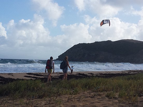 isthme, quelques kites-surfs. Sur la plage : 2 ou 3 échoppes