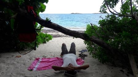 mouillons au milieu des écueils, espérant une jolie plongée.