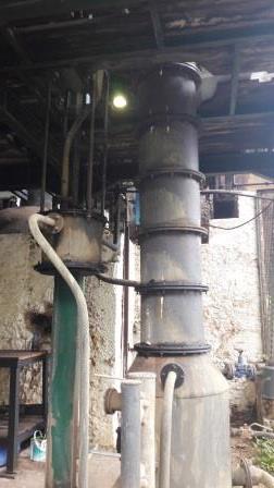 colonnes de distillation en cuivre d'époque.