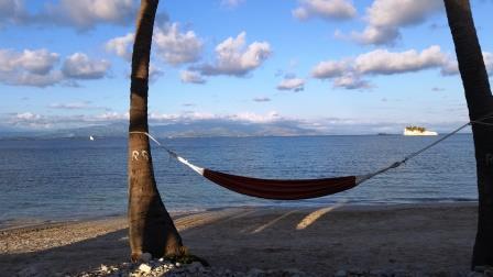 avec même une petite plage devant sa maison, trois cocotiers et un hamac. Une