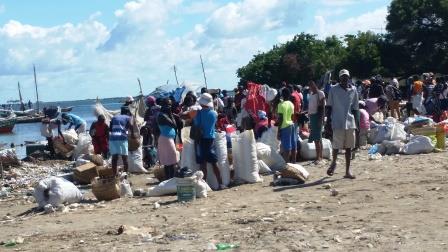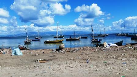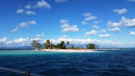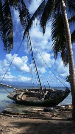 Tous les marchands sont venus en barques à moteur du village des Cayes, sorte de « capitale » de l’île à Vaches située sur l’île principale à 10 kms de là et…ravagée par l’ouragan Matthew. Retour à notre mouillage en taxi-moto ( à trois sur la moto !).