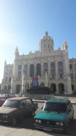 Au sud-Ouest de la Habana Vieja, au bout de l’axe de circulation Paseo de Marti (appelé par tous les Habanais le Prado) qui sépare Habana Vieja de Habana Centro, il y a le Capitolio avec son dôme achevé en 1929 et le gigantesque théâtre. Par rapport aux quartiers de la Habana Vieja, rupture de style (architecture classique), rupture d’échelle (le bâtiment du Capitolio mesure 200m de long, le Gran teatro a des dimensions imposantes), rupture de couleur (murs blancs). Le tout donnant sur une grande place bruyante, lieu de croisement de grandes avenues. Malgré ses quelques palmiers royaux et ses bancs, aucune envie de s’y poser !