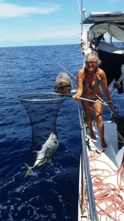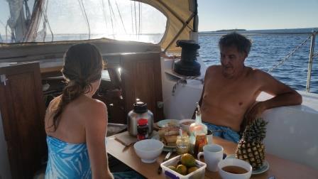 Dîner à bord de TAO avec un magnifique Pagre donné à Philippe par les gardiens-pêcheurs.