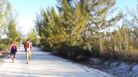 prenons la piste direction plein Est. Une piste de sable blanc tassé, encadrée
