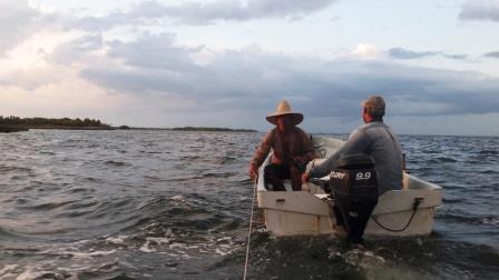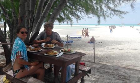 Vendredi 19 mai : toujours à Cayo Campo. Nous sommes invités par les gardiens de la station pour le déjeuner : un délicieux plat de langoustes en sauce.