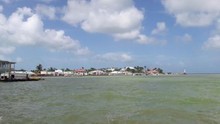 Nous arrivons à Ambergris Cay, vers 12h, le soleil dans le dos – cela c’est