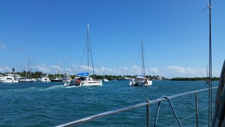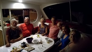 Pour une fois il y a un autre voilier au mouillage. C’est un catamaran français que nous allons saluer et qui nous invite pour l’apéritif. Au cours de la discussion nous découvrons que ce ne sont pas des inconnus : les six occupants du catamaran sont des médecins ayant appartenu au même petit syndicat médical « gauchiste » (SMG – Syndicat de la médecine générale) que Christian. Soirée très sympathique entre anciens combattants toujours aventuriers. Dimanche 18 février, le moteur a fait des siennes en calant
