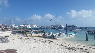 droit de mouiller là. Nous levons l’ancre et, sous génois seul, nous remontons Cozumel pour aller mouiller sur la côte